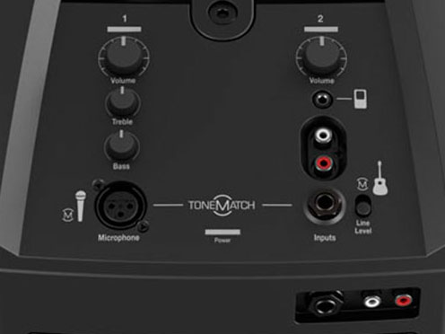 | 楽器演奏の場合:ロックバンドOK ドラムセットありの演奏でも、充分な音量を得られます (学校の普通教室くらいの大きさまで) |